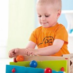 Children send the three balls down the ball track and are rewarded with stimiulating features such as little bells.